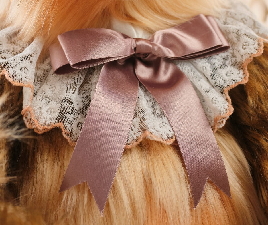- Sweet bow and delicate lace collar for a classic, collectible finish