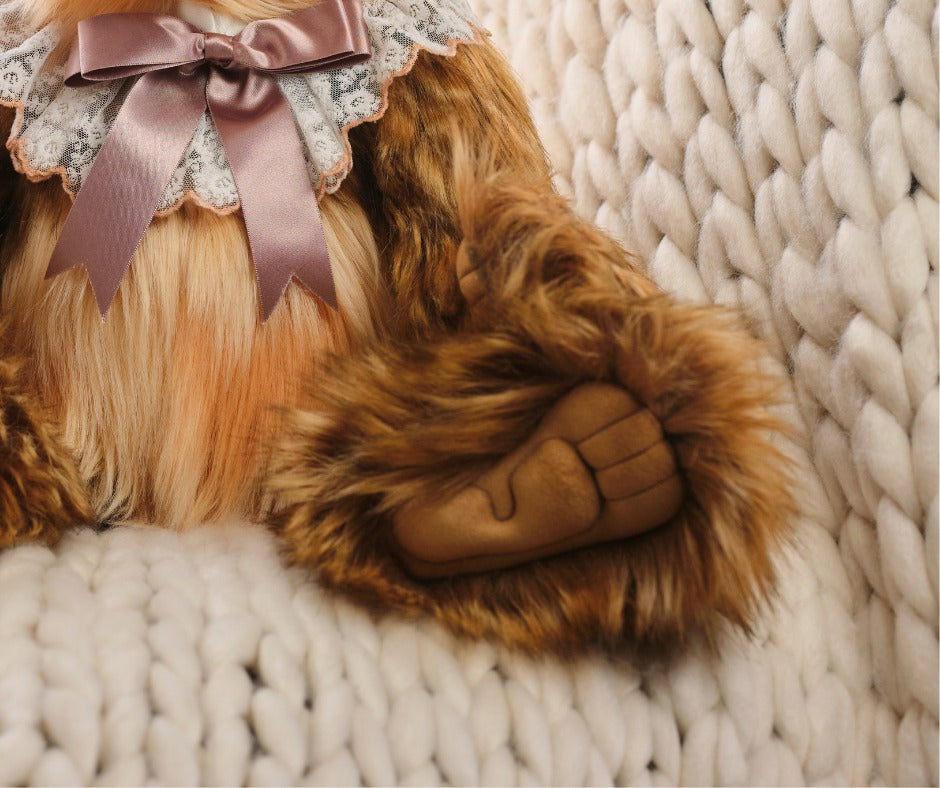 Meet the Charlie Year Bear 2026 — the 18th enchanting edition in the cherished Year Bear series. Extra‑large and irresistibly huggable, she’s crafted in sumptuous long‑pile plush with warm tones of brown, caramel and cream, and finished with a sweet bow and delicate lace collar.