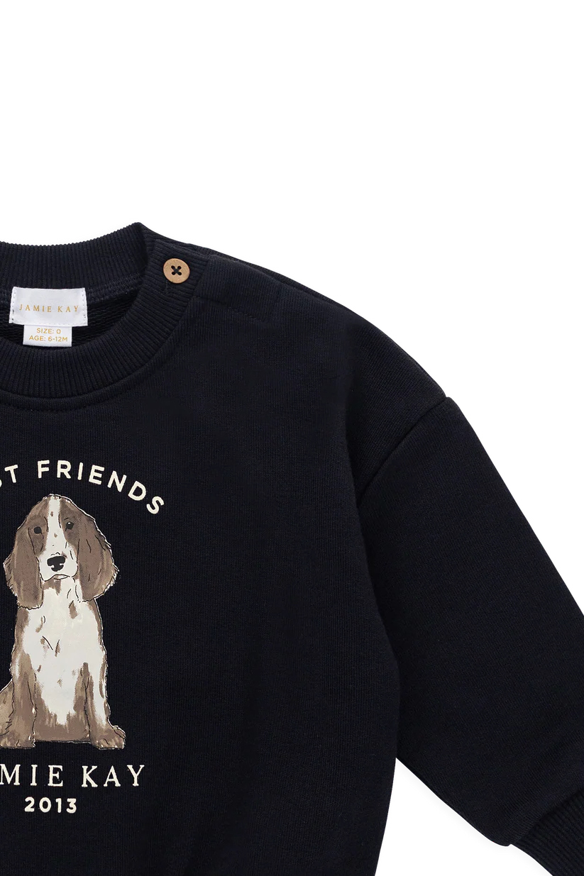 The Nash Sweatshirt in Eclipse Best Friends is a cozy and stylish piece designed for everyday comfort. Featuring a classic crew neckline and a charming “Best Friends” graphic print, this sweatshirt is perfect for layering during cooler days while keeping your little one snug and chic.